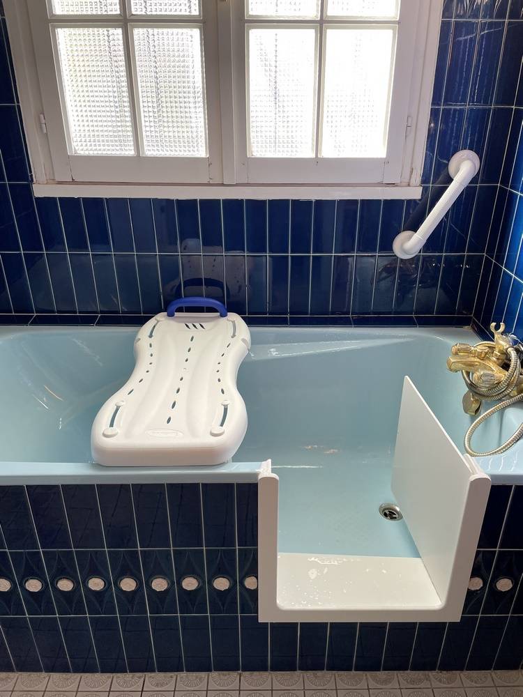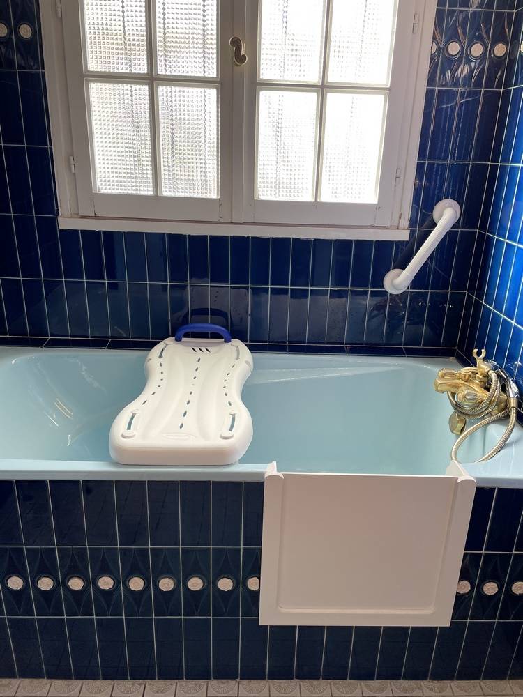 faciliter votre toilette. La fourniture et la pose d'une poignée murale et d'une planche de bain facilitera et sécurisera votre transfert à l'intérieur de votre baignoire. Depuis l'extérieur de votre baignoire, il vous suffira de vous assoir sur la planche de bain et de vous transférer à l'intérieur par une simple rotation en vous tenant à la poignée murale.