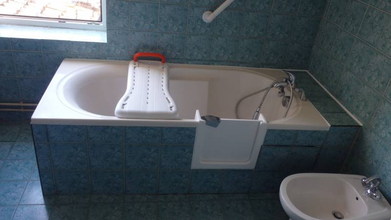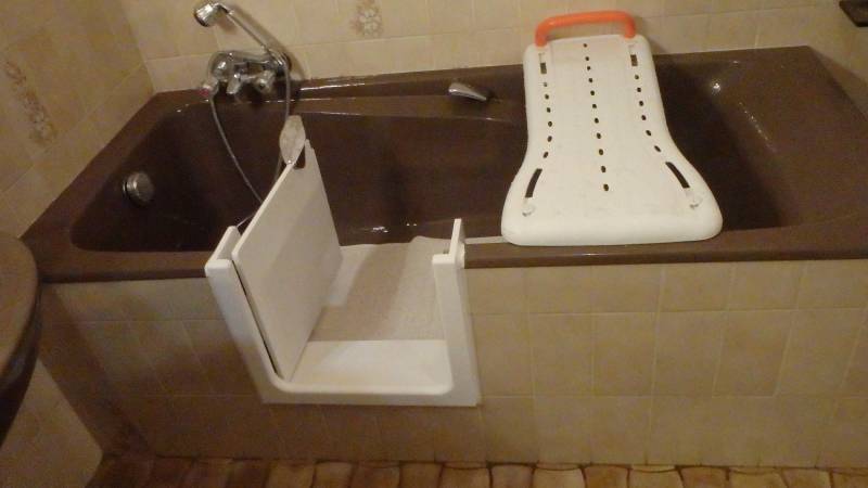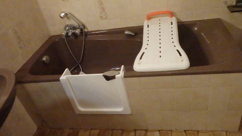 Cette réalisation permet à notre cliente âgée d’accéder à sa baignoire en toute simplicité, sans enjamber le tablier de baignoire et en toute sécurité. De plus, grâce à la porte étanche réalisé sur mesure, le plaisir du bain est conservé avec de la sécurité.