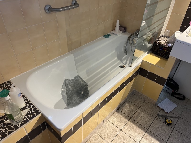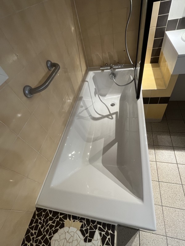remplacé la baignoire par une nouvelle baignoire en acrylique. Des adaptations sur mesure ont été nécessaires, mais cela est la spécialité de